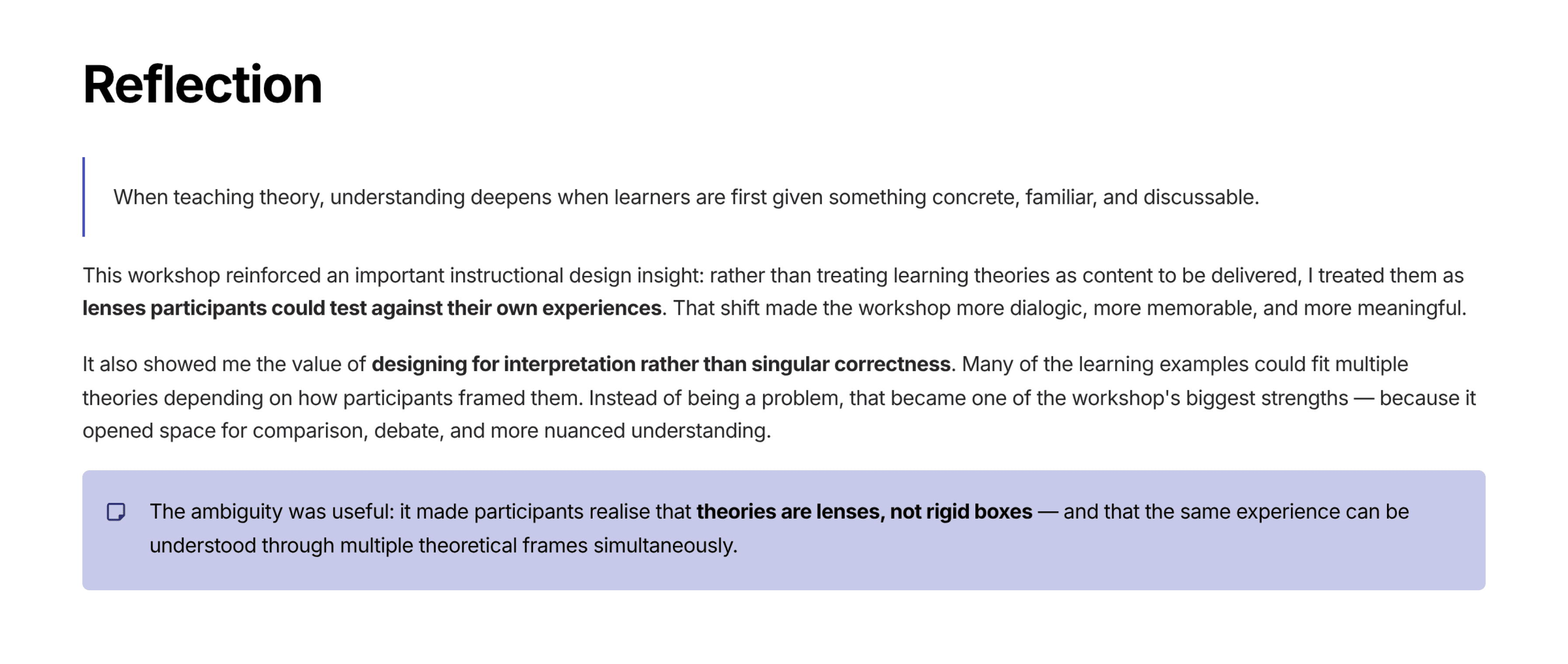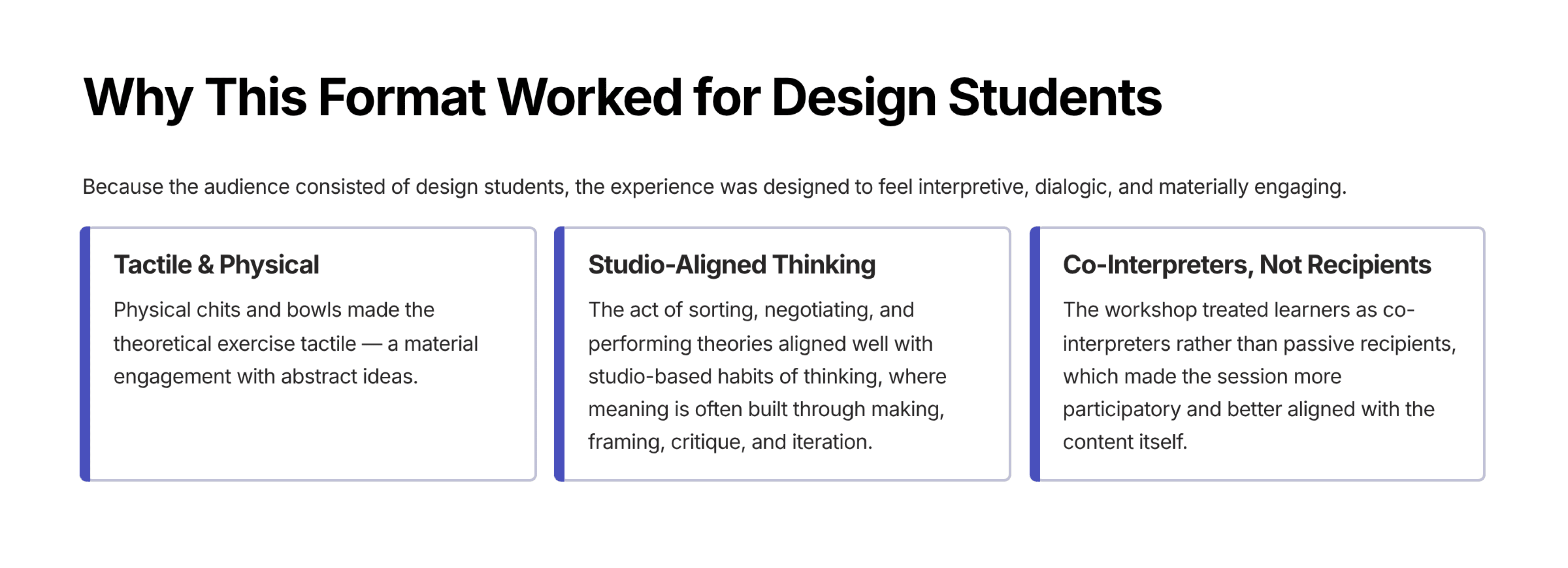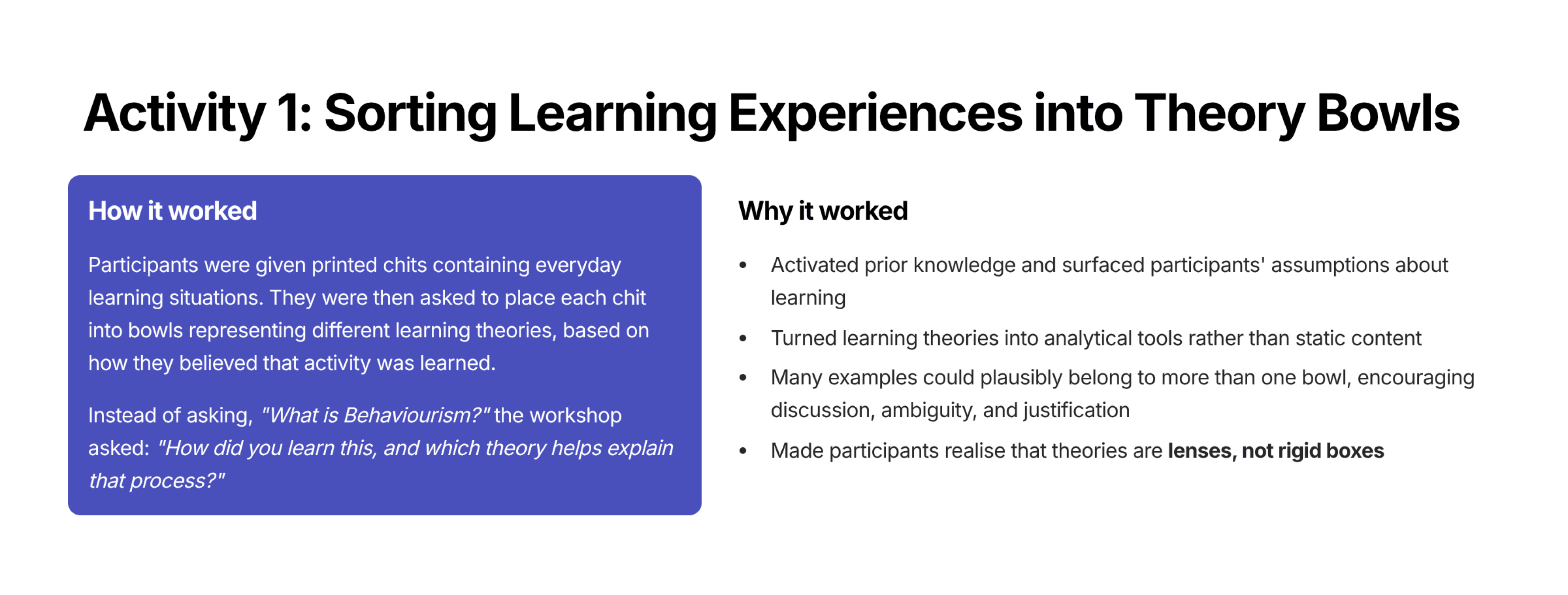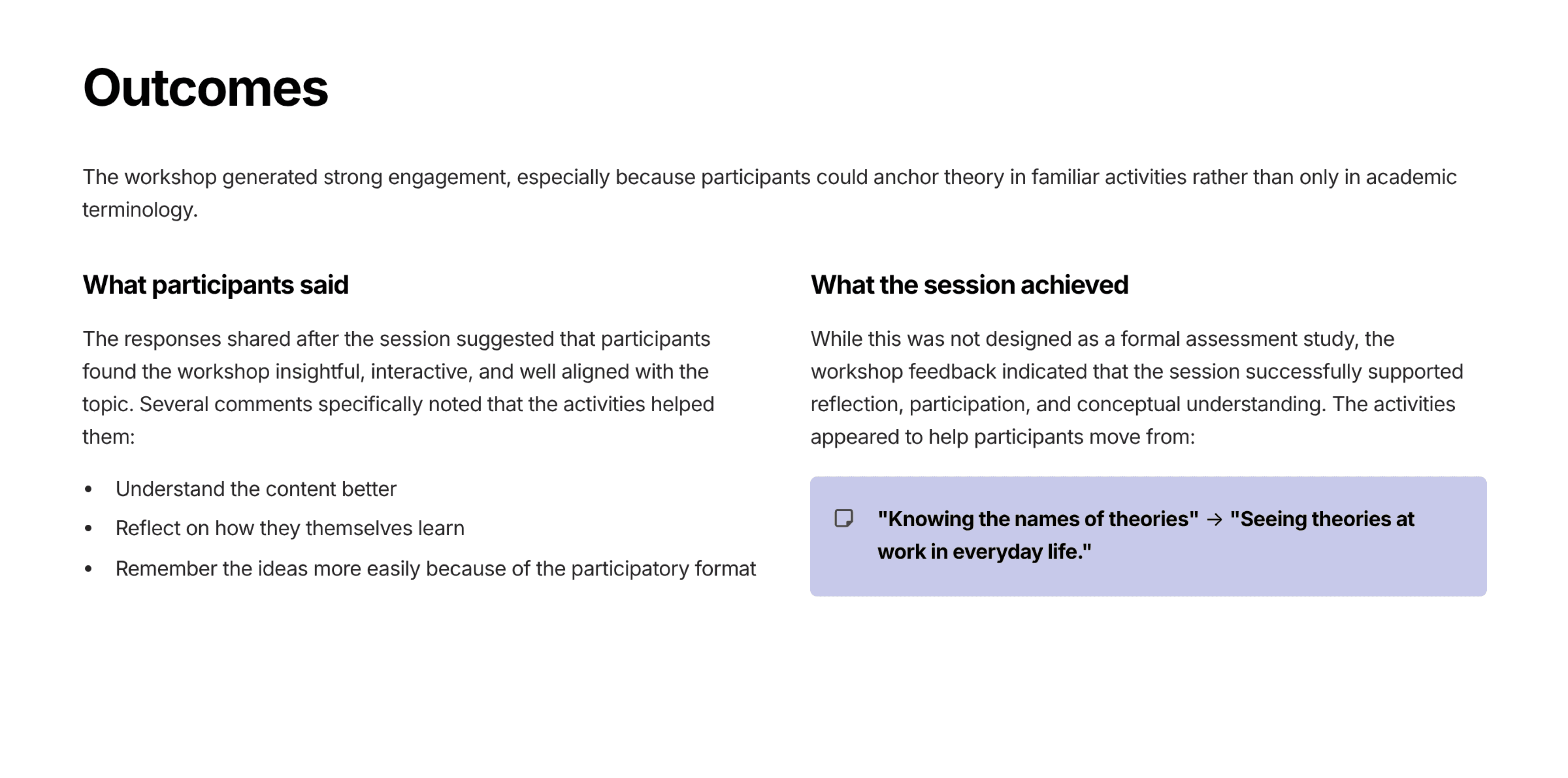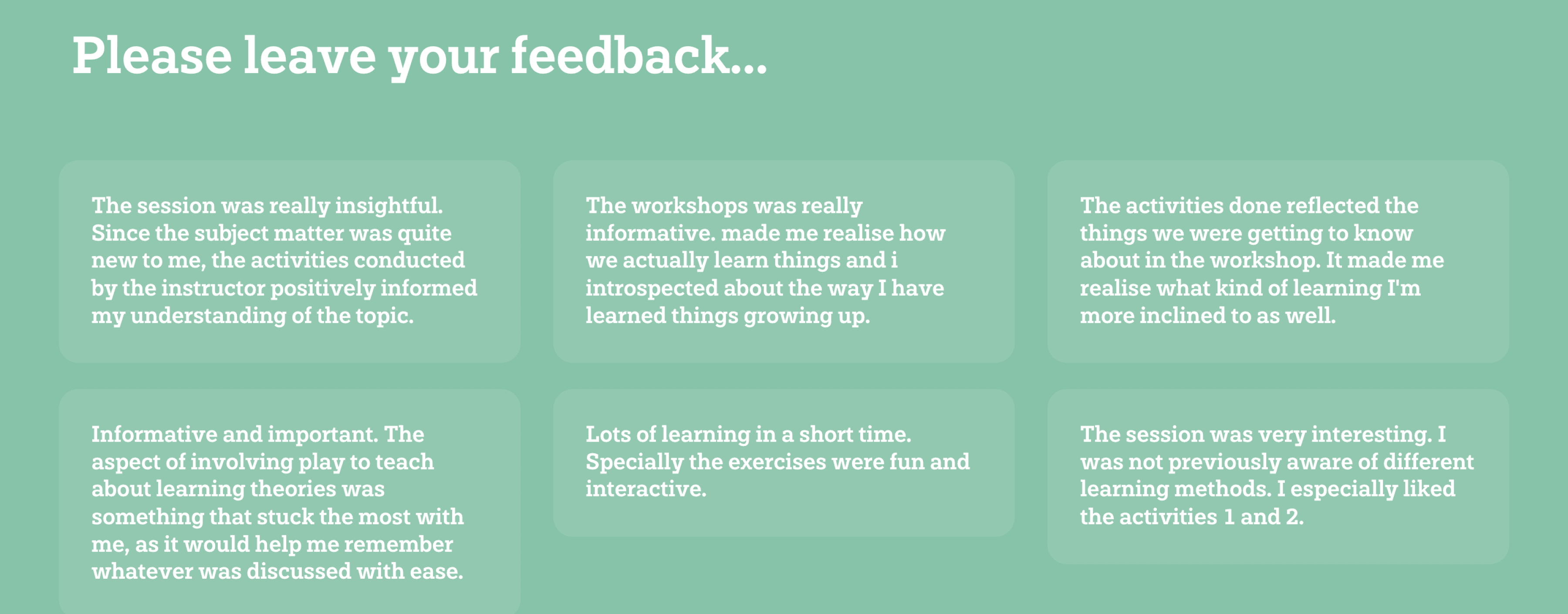 Inputs from the participants in the interactive presentation